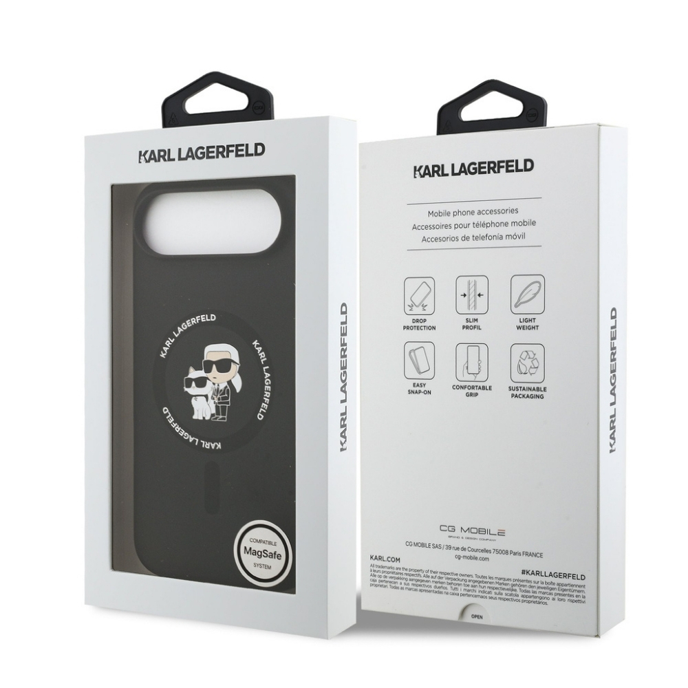 Оригинален калъф / гръб / Karl Lagerfeld Silicone Double Heads And Circle с безжично зареждане MagSafe кейс за Apple iPhone 17 Air (6.9) - черен