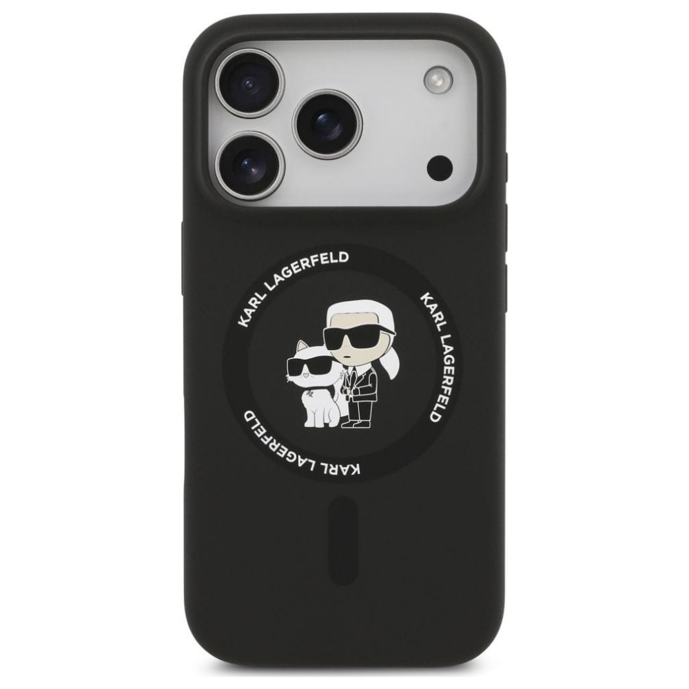 Оригинален калъф / гръб / Karl Lagerfeld Silicone Double Heads And Circle с безжично зареждане MagSafe кейс за Apple iPhone 17 Pro (6.3) - черен