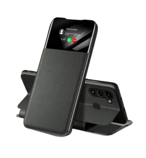 Луксозен кожен калъф Smart View Cover за Samsung Galaxy A03 - черен