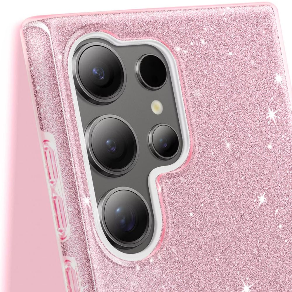 Силиконов калъф / гръб / кейс за Samsung Galaxy S26 Ultra - розов / брокат
