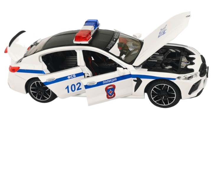 Метална кола с отварящи се врати капаци светлини и звуци BMW 8 Series Полиция 1:24