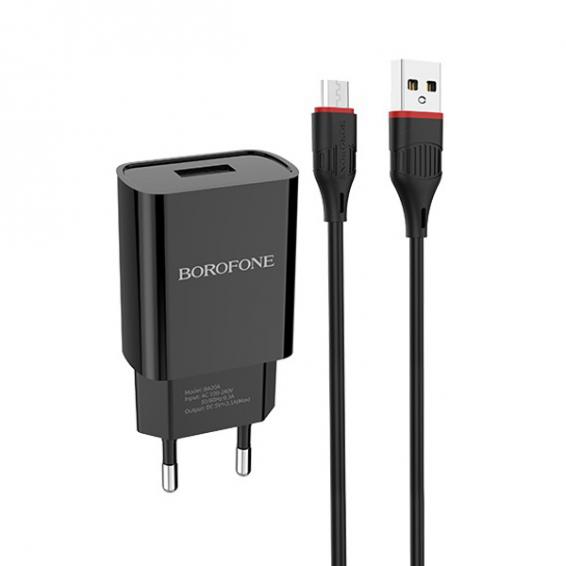 Универсално зарядно устройство 220V BOROFONE BA20A 2.1A / Micro кабел - черно