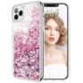 Луксозен твърд гръб 3D Water Case за Apple iPhone 11 - прозрачен / течен гръб с розов брокат