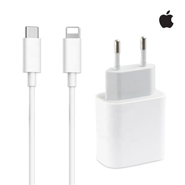 Оригинален комплект за бързо зареждане, включващ преходник и Type C to Lightning кабел.