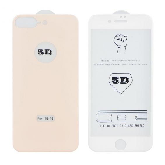 5D full cover Tempered glass Full Glue screen protector Apple iPhone 7 Plus / iPhone 8 Plus / Извит стъклен скрийн протектор с лепило за Apple iPhone 7 Plus / iPhone 8 Plus - лице и гръб / бяло и розово