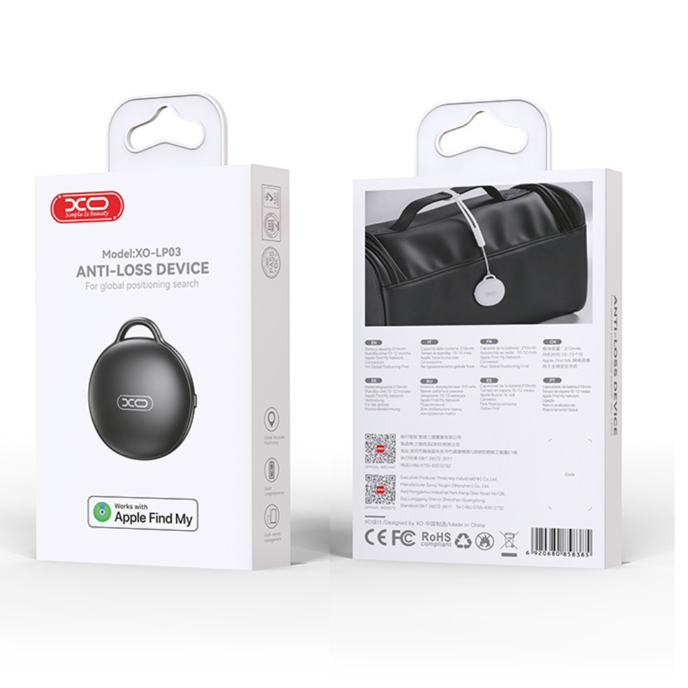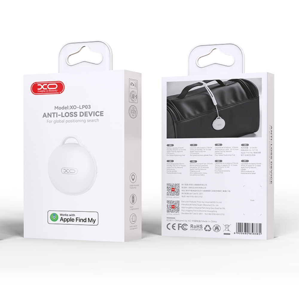 Локаторът XO LP03 е устройство за проследяване на местоположението на предмети. Обезопасете своя портфейл, ключове, чанта или други ценни предмети. Локаторът е напълно съвместим с приложението FindMy. Той е снабден с батерия CR2032, която може да бъде подменяна. Животът на батерията е приблизително 1 година. Притежава следните функционалности: проверка на местоположението в приложението, функция против загуба - когато локаторът се отдалечи на определено разстояние, приложението ще изпрати напомняне, задействане на звуков сигнал чрез приложението.
