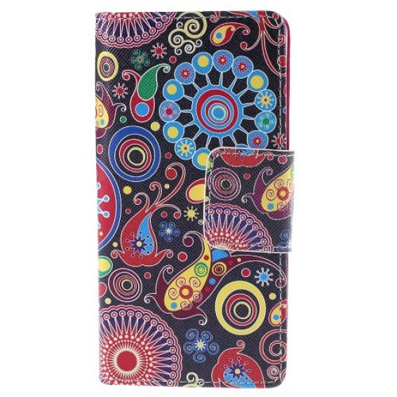 Кожен калъф Flip тефтер със стойка за Huawei Ascend P8 - цветни орнаменти