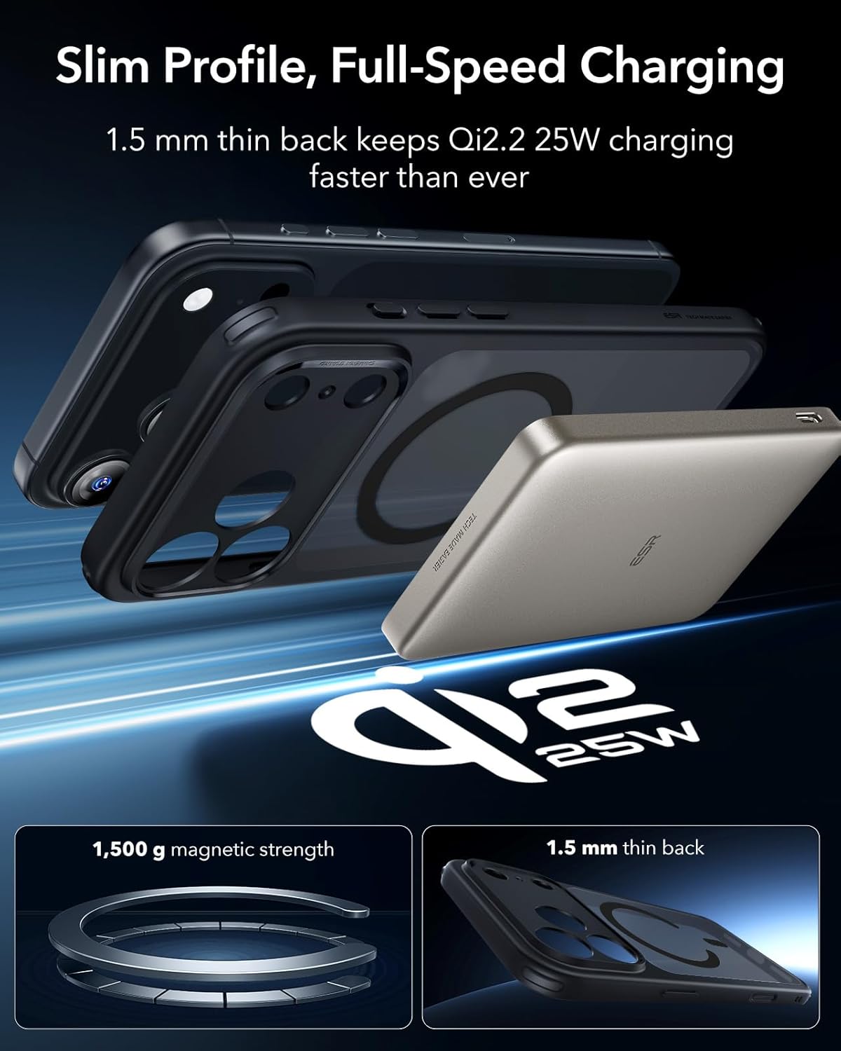 - По-силно магнитно заключване: мощни вградени магнити със сила на задържане от 1500 g позволяват по-бързо и лесно безжично зареждане и осигуряват сигурно заключване на всеки MagSafe аксесоар.