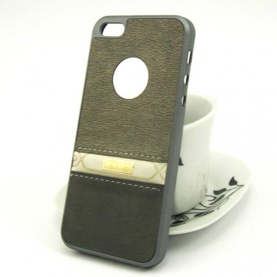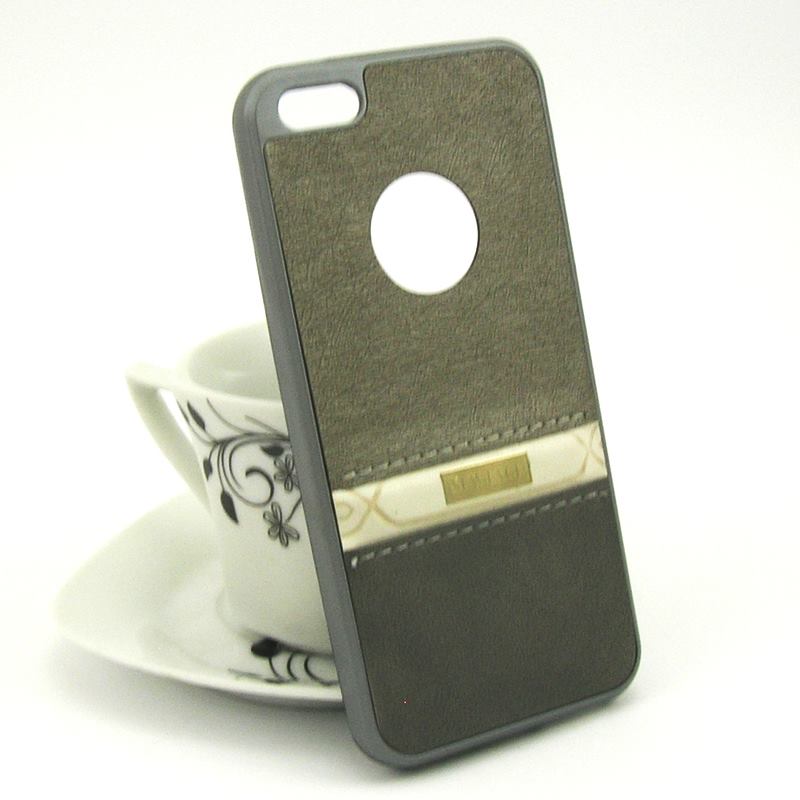 Луксозен твърд гръб New Face за Apple iPhone 5 / iPhone 5S / iPhone SE - сив / имитиращ кожа