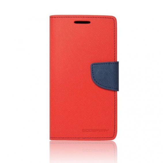 Кожен калъф Flip тефтер Mercury GOOSPERY Fancy Diary със стойка за Huawei Ascend P8 Lite - червен с тъмно синьо