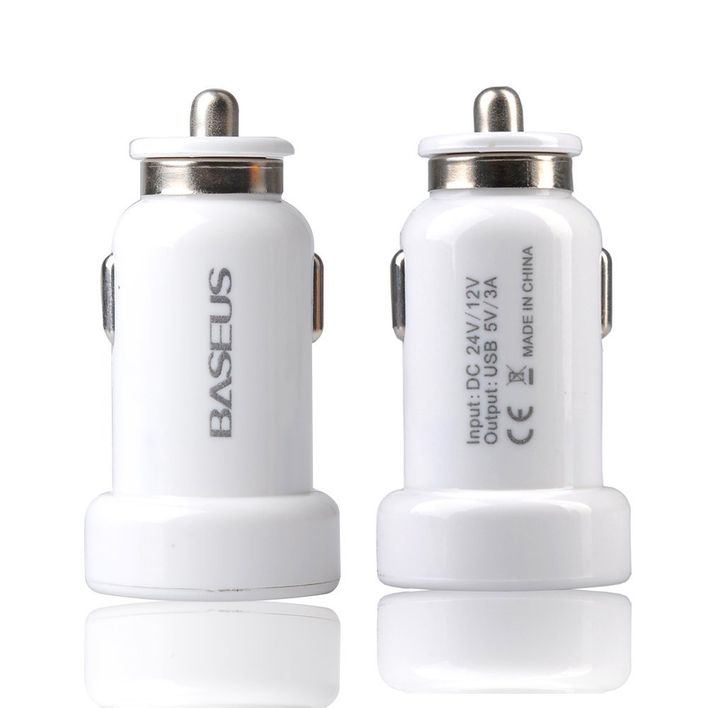 Универсално зарядно за кола Baseus Tiny Series double Car Charger / Input: 12-24V / Output: USB1: 5V-3A; USB2: 5V-3A - бяло