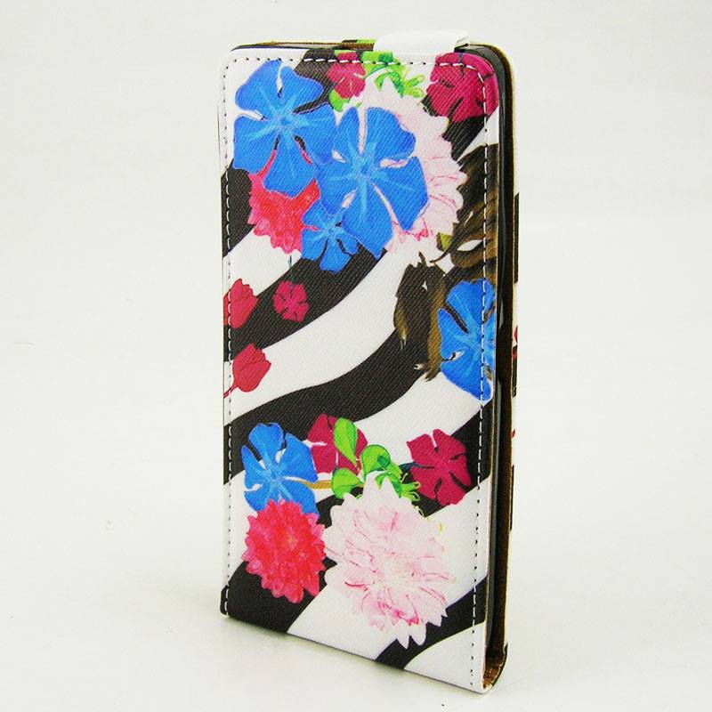 Кожен калъф Flip тефтер Flexi за Apple iPhone 6 4.7" - бяло и черно / цветя