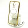 Луксозен силиконов калъф / гръб / TPU / Elegant с камъни за Nokia 7 Plus - прозрачен със златист кант / сърце