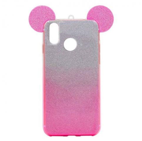 Луксозен силиконов калъф / гръб / TPU 3D за Samsung Galaxy A40 - преливащ / розово и сребристо / брокат / миши ушички / 2в1