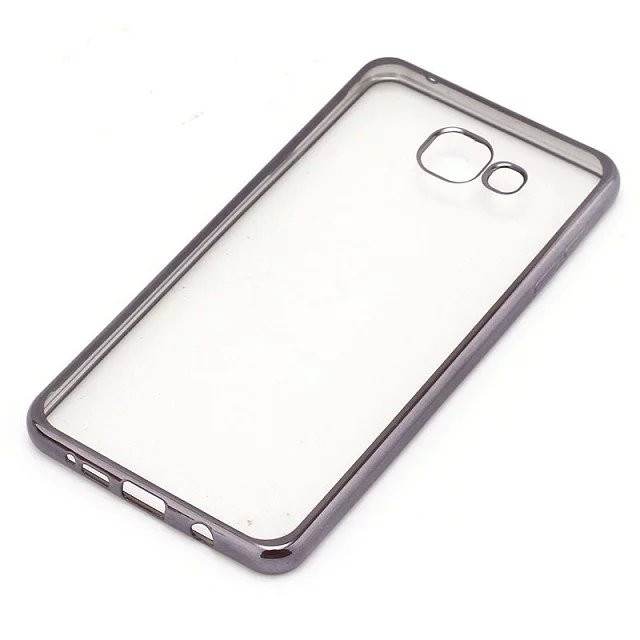 Луксозен силиконов калъф / гръб / TPU за Samsung Galaxy A5 2016 A510 - прозрачен / тъмно сив кант