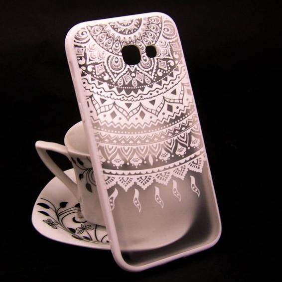 Луксозен твърд гръб за Samsung Galaxy A5 2017 A520 - прозрачен / бял кант / бели орнаменти