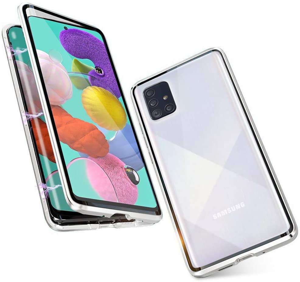 Магнитен калъф Bumper Case 360° FULL за Samsung Galaxy A51 - прозрачен / сребриста рамка