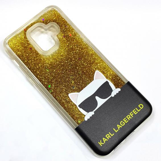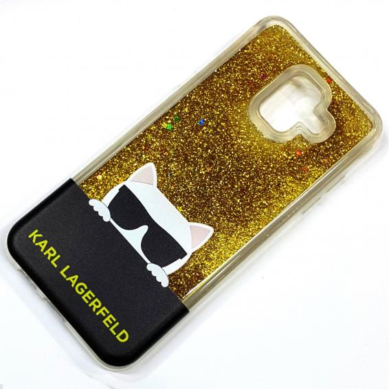 Луксозен твърд гръб 3D за Samsung Galaxy A6 2018 - прозрачен / златист брокат / KARL LAGERFELD