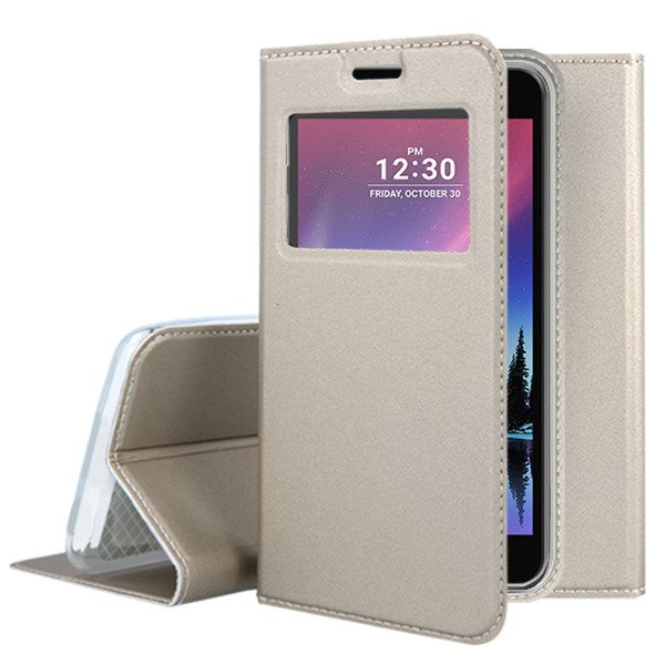 Луксозен кожен калъф Flip тефтер S-view със стойка LOOK за Samsung Galaxy A6 Plus 2018 - златист