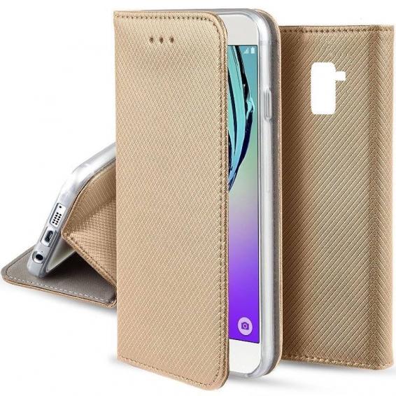 Кожен калъф Magnet Case със стойка за Samsung Galaxy A8 2018 A530F - златист