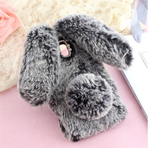 Луксозен силиконов калъф / гръб / TPU 3D с пух за Samsung Galaxy J3 2018 - тъмно сиво зайче / Bunny Case