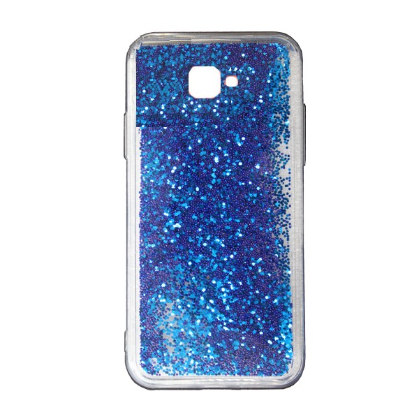 Луксозен твърд гръб 3D Water Case за Samsung Galaxy J4 Plus 2018 - прозрачен / течен гръб със син брокат