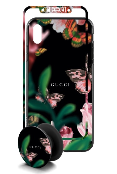 Луксозен твърд гръб 3in1 със стъклен протектор и Popsocket за Samsung Galaxy J4 Plus 2018 - черен / пеперуди