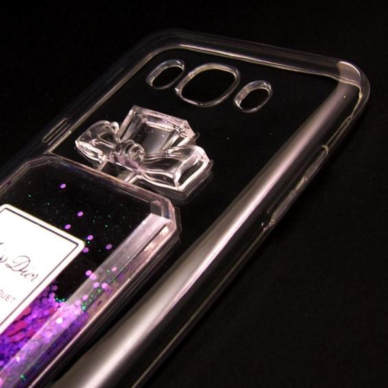 Луксозен силиконов калъф / гръб / TPU 3D за Samsung Galaxy J5 2016 J510 - прозрачен / парфюм / лилави сърца