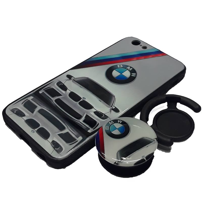 Луксозен твърд гръб 3in1 с Popsocket за Apple iPhone 6 / iPhone 6S - бял / BMW
