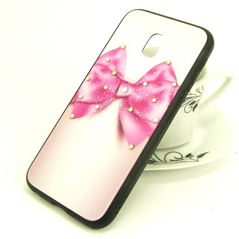 Луксозен твърд гръб със силиконов кант и камъни за Samsung Galaxy J7 2017 J730 - розов с панделка