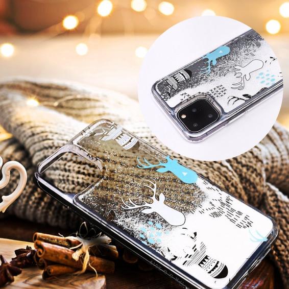 Начало>Samsung Galaxy Note 10 Plus N975>Луксозен твърд гръб 3D Winter Water Case за Samsung Galaxy Note 10 Plus N975 - прозрачен / течен гръб с бял брокат / Reindeers