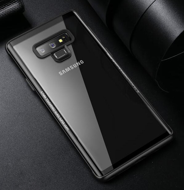 Луксозен стъклен твърд гръб EDIVIA GLASS за Samsung Galaxy Note 9 - прозрачен / черен кант