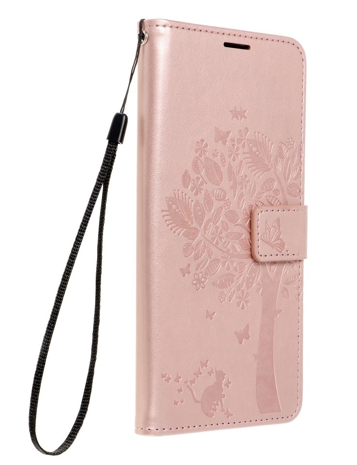 Кожен калъф Mezzo Book със стойка за Samsung Galaxy S20 FE – дърво / Rose Gold