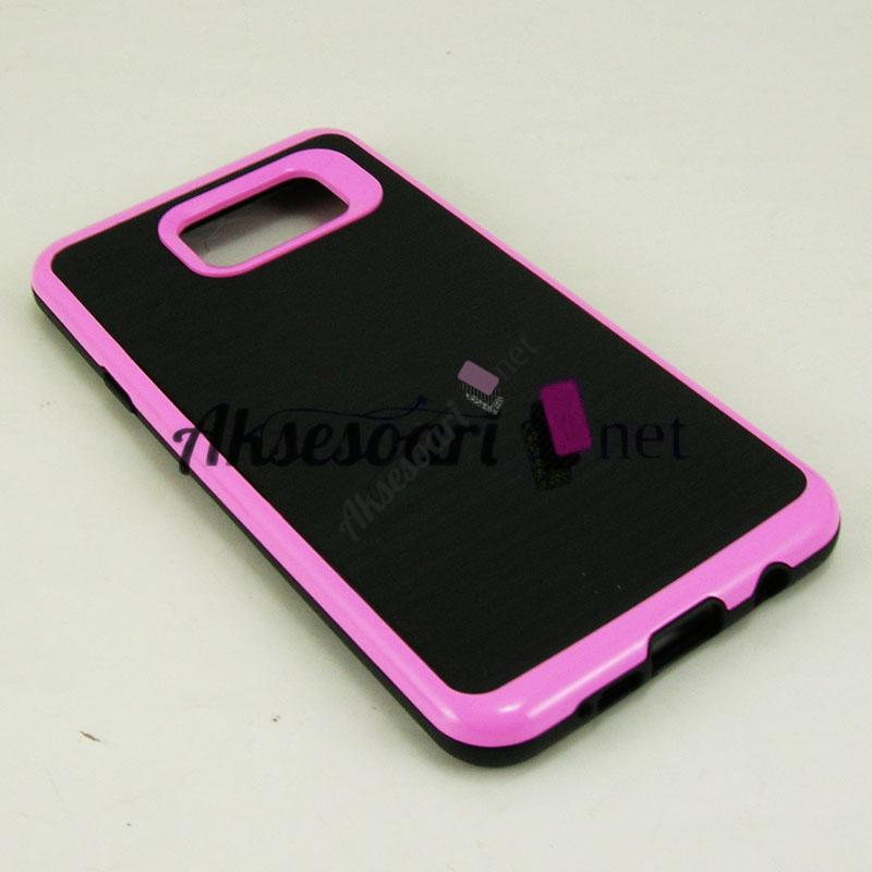 Луксозен силиконов калъф / гръб / TPU ROYCE за Samsung Galaxy S6 Edge G925 - черен / розов кант