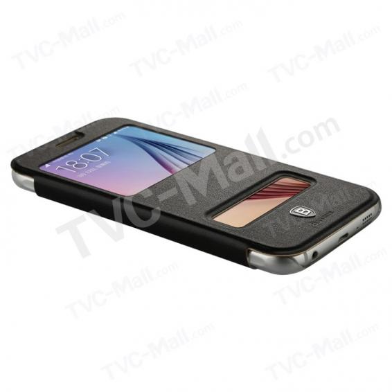 Луксозен кожен калъф Flip тефтер S-View Baseus Primary за Samsung Galaxy S6 G920 - черен