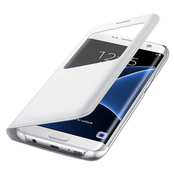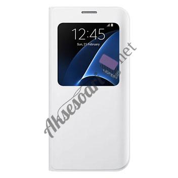 Кожен калъф S View Cover за Samsung Galaxy S7 Edge G935 - бял
