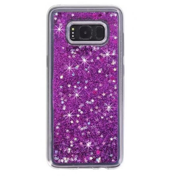 Луксозен твърд гръб 3D за Samsung Galaxy S8 Plus G955 - прозрачен / лилав брокат / звездички