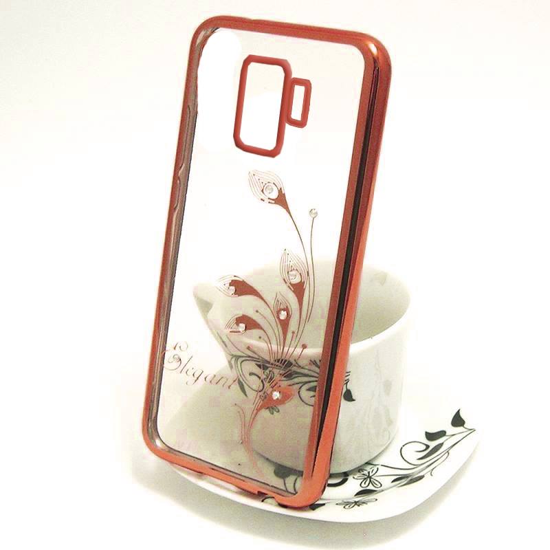 Луксозен силиконов калъф / гръб / TPU / Elegant с камъни за Samsung Galaxy S9 G960 - прозрачен с Rose Gold кант / перо