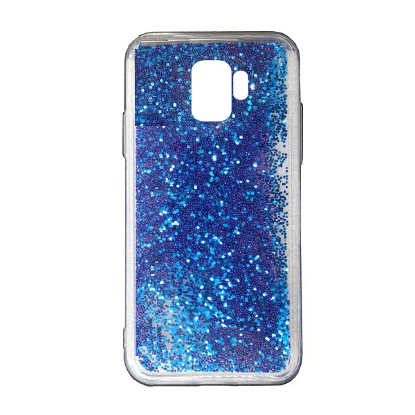 Луксозен твърд гръб 3D Water Case за Samsung Galaxy S9 G960 - прозрачен / течен гръб със син брокат