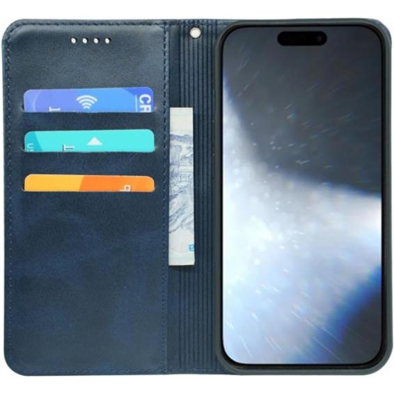 Кожен калъф Flip тефтер Magnetic Book със стойка за Samsung Galaxy S25 FE - тъмносин